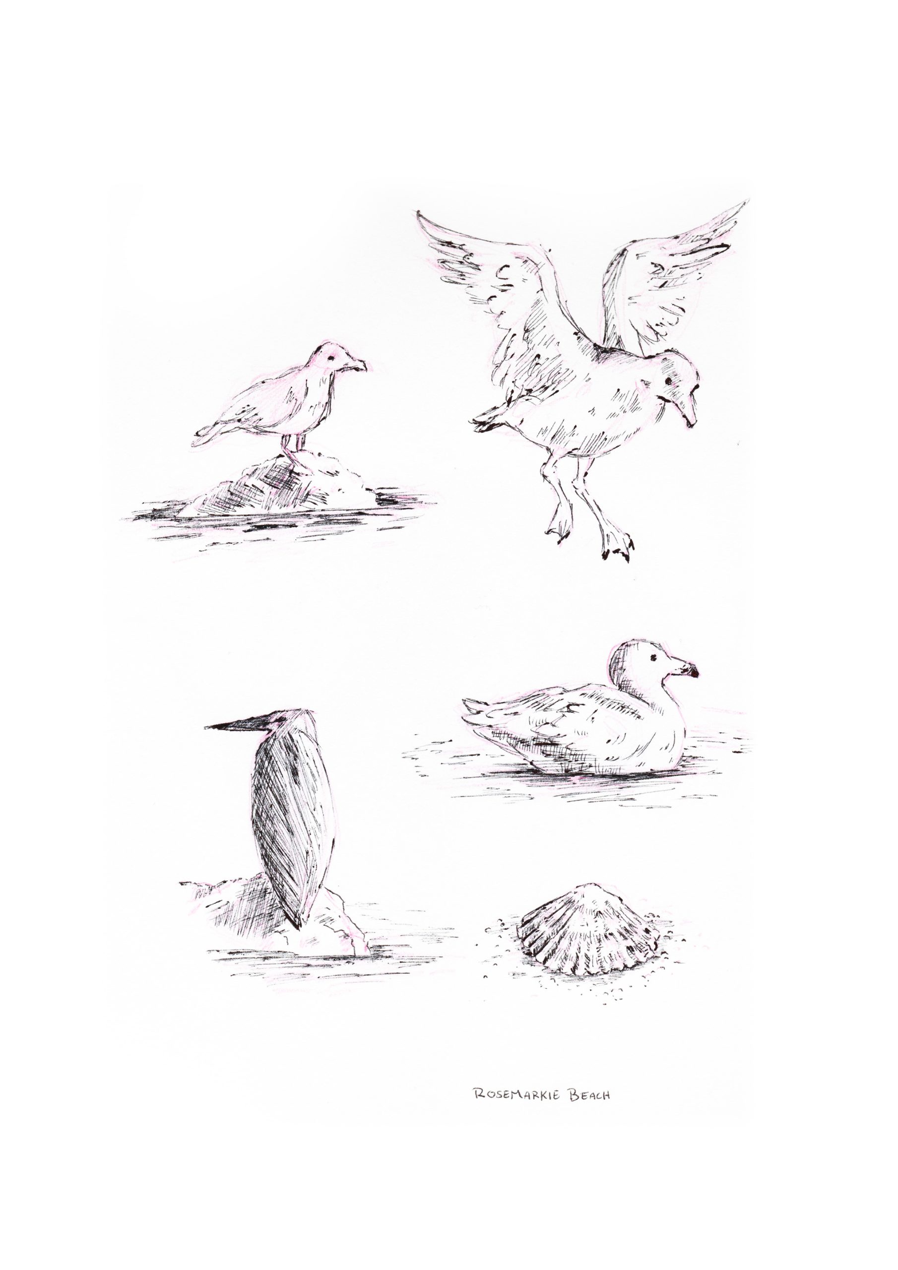Zeichnungen, die ich während meines Urlaubs in Fortrose, Schottland, November 2023 gemacht habe.