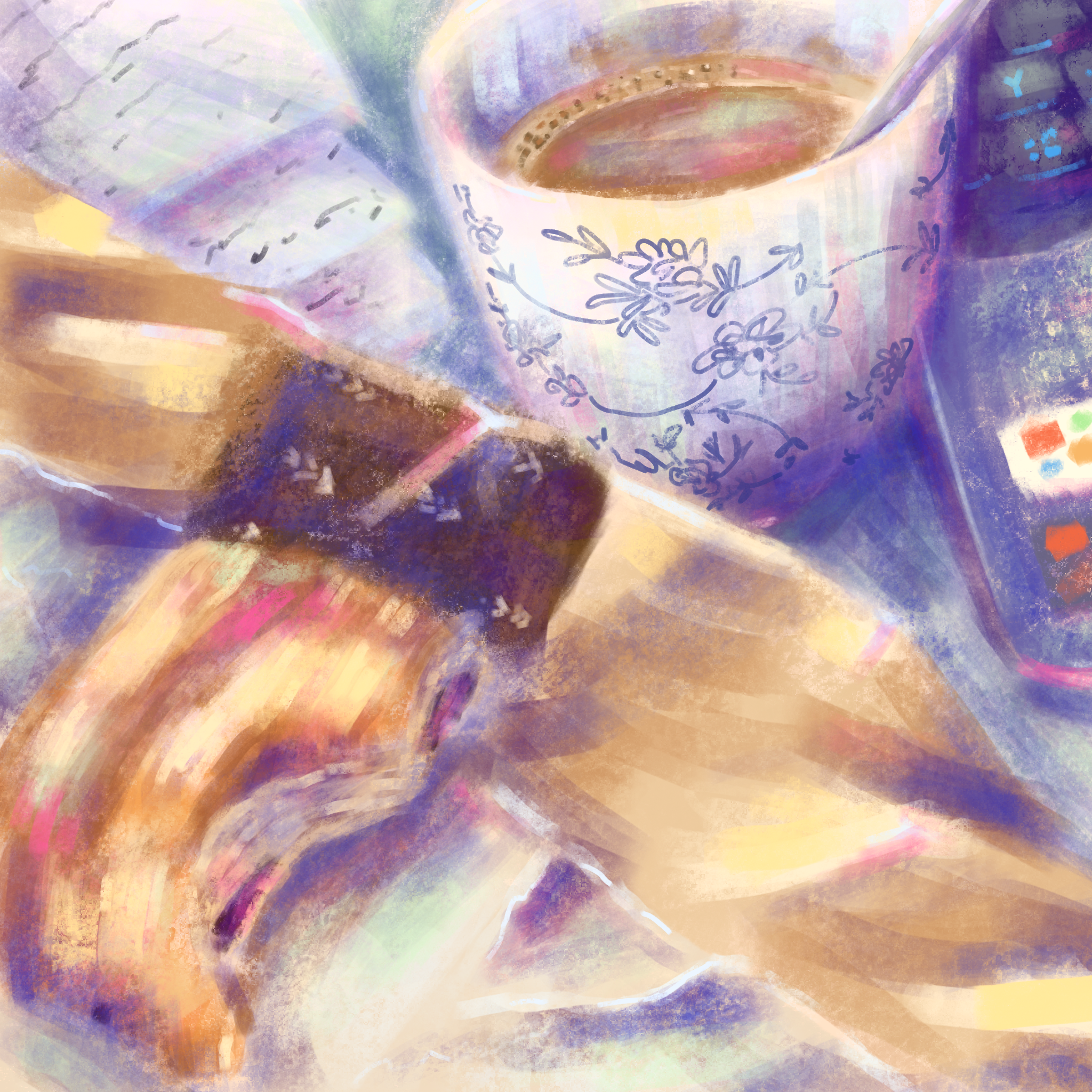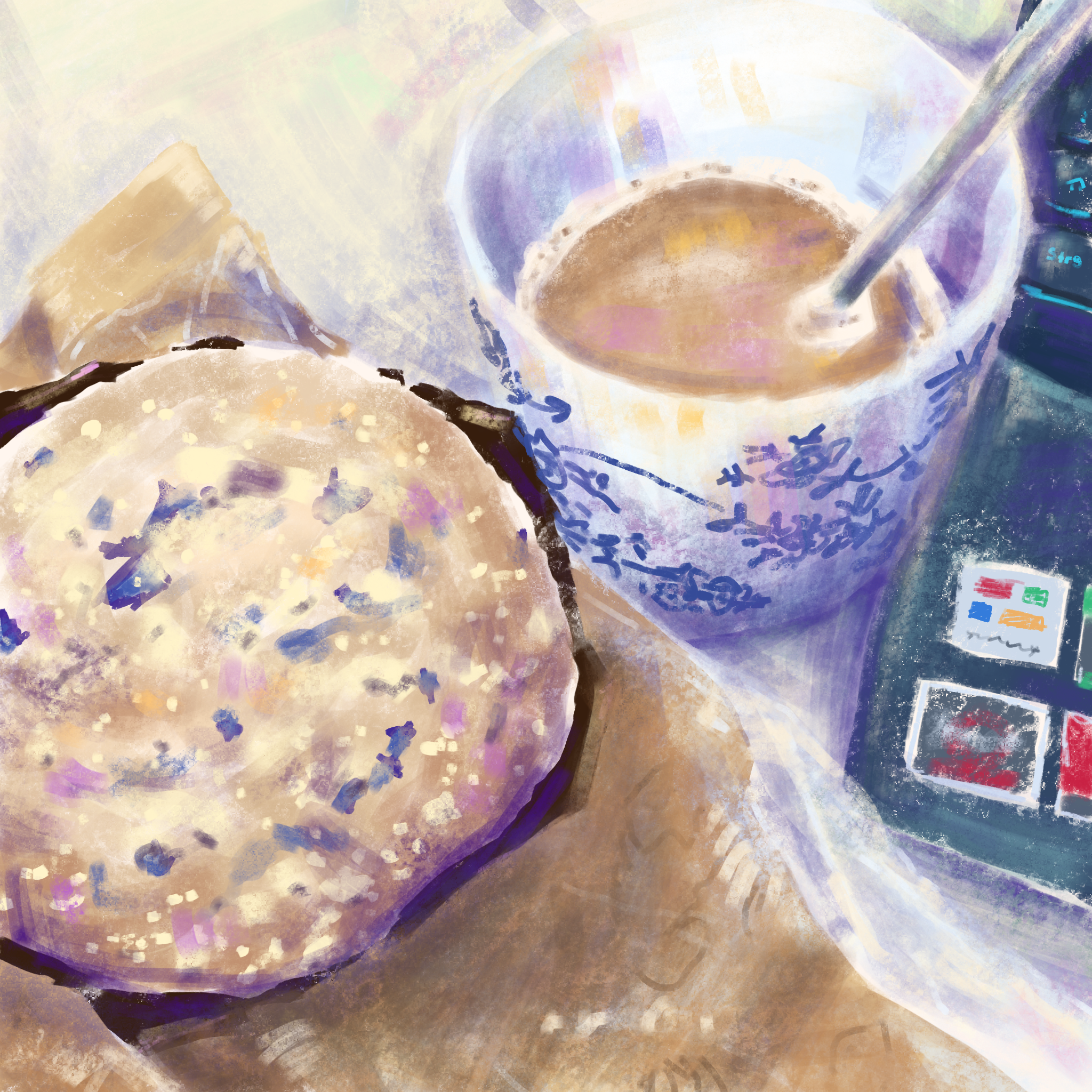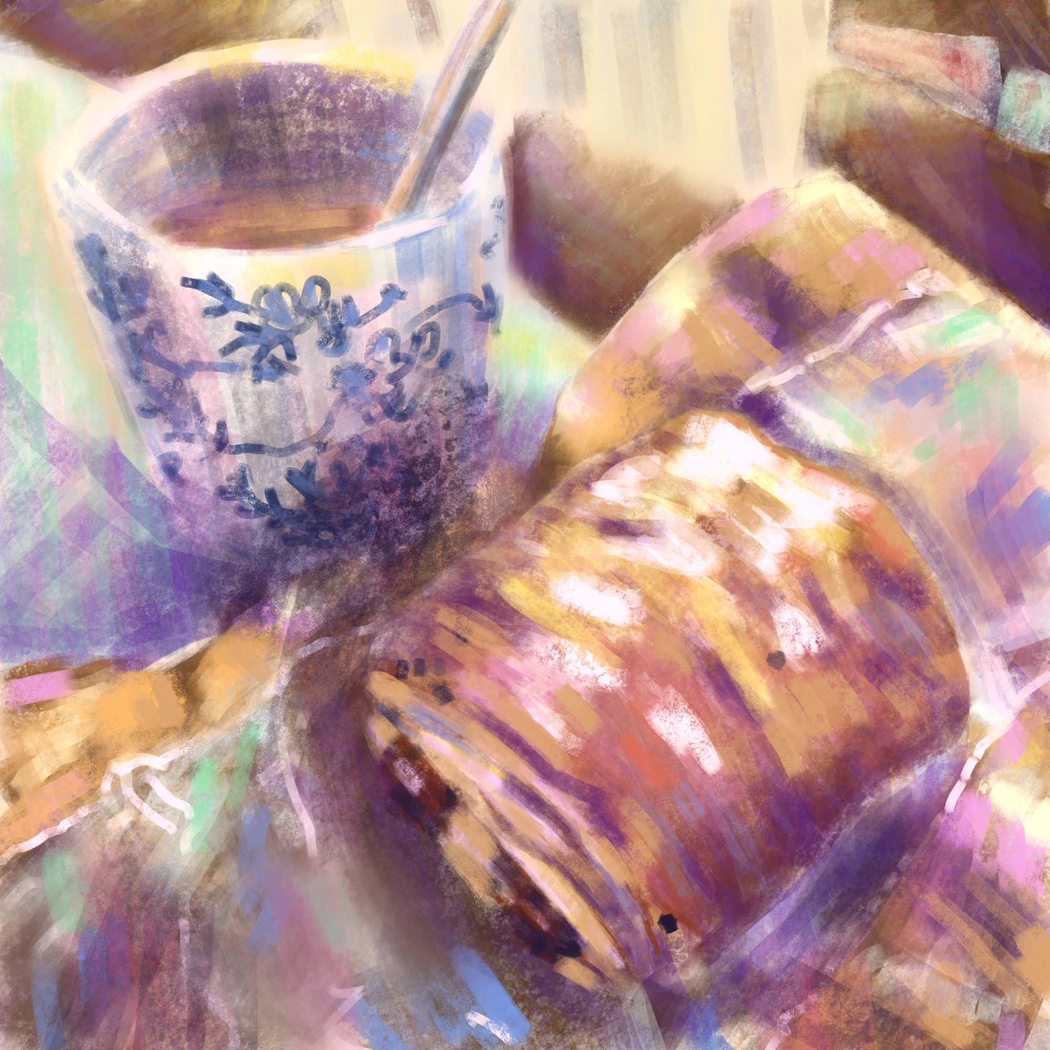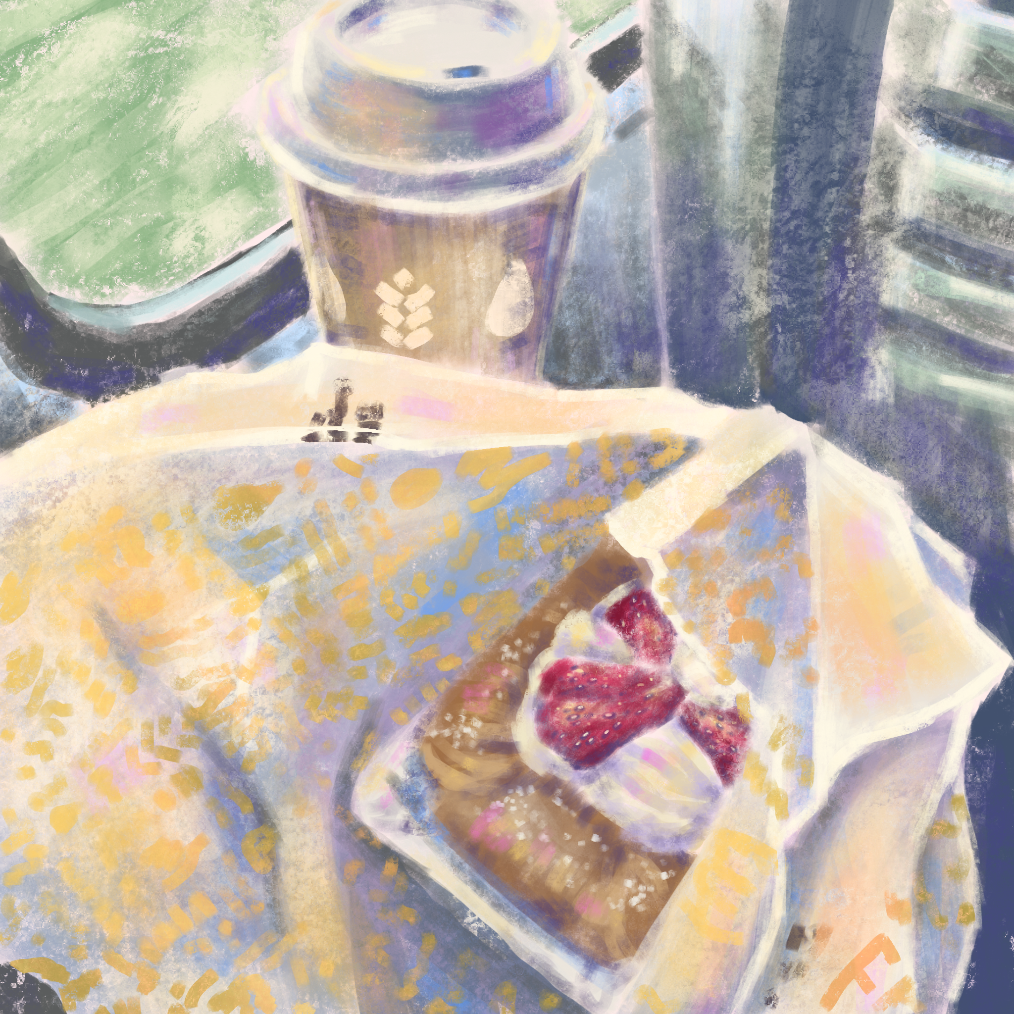 Auf meinem Weg zur Berufsschule habe ich morgens Frühstück besorgt und dieses, um die Fahrtzeit totzuschlagen, dann auf meinem iPad gezeichnet.