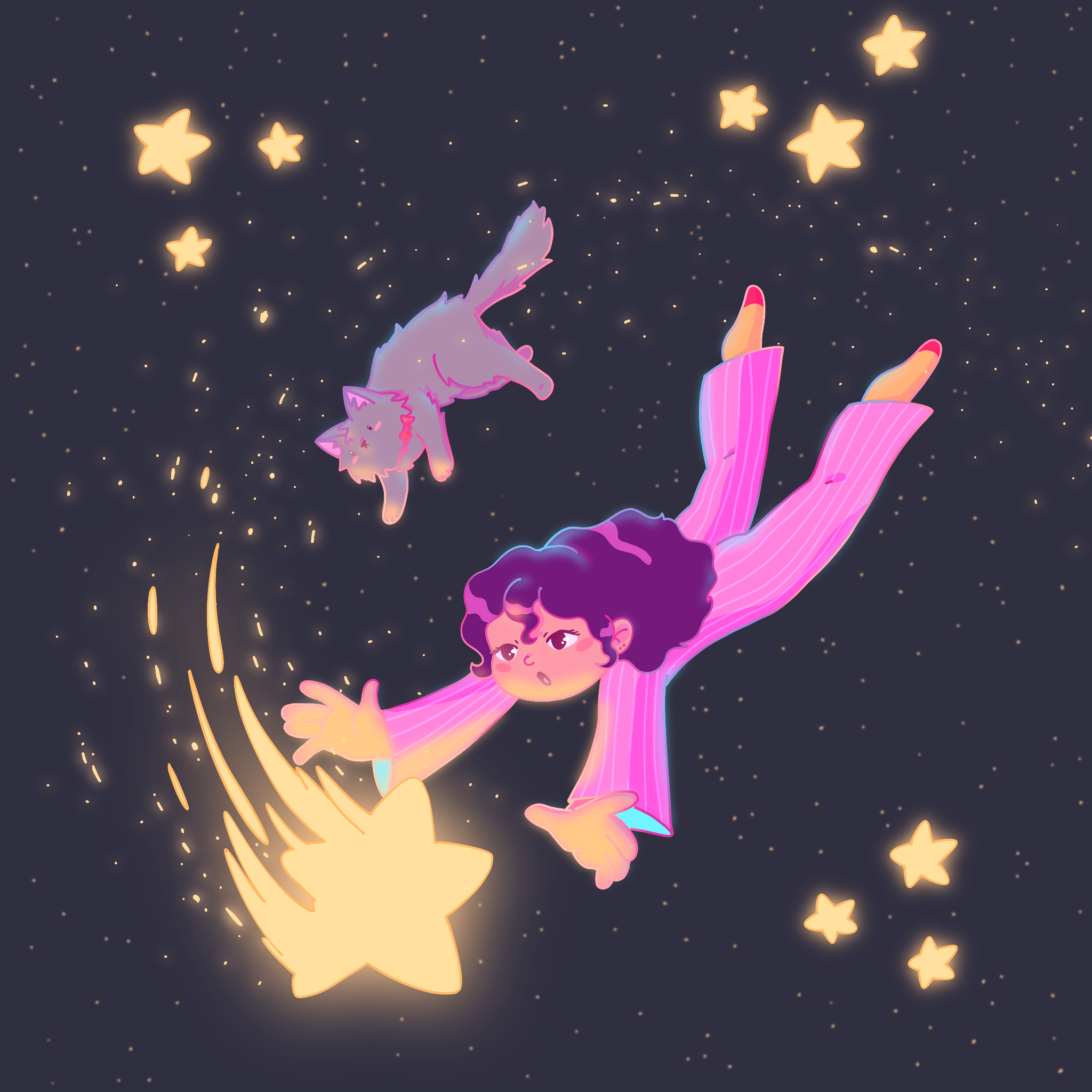 Ich habe eine Weile mich selbst und meinen Kater in ein Sci-Fi Space Abenteuer geträumt. Hierzu habe ich die ein oder andere Illustration angefertigt.